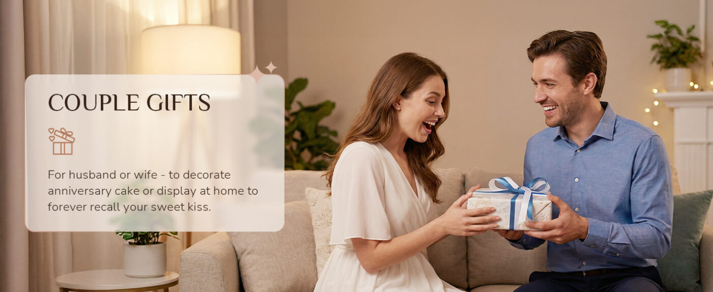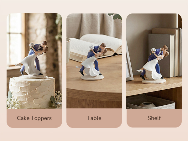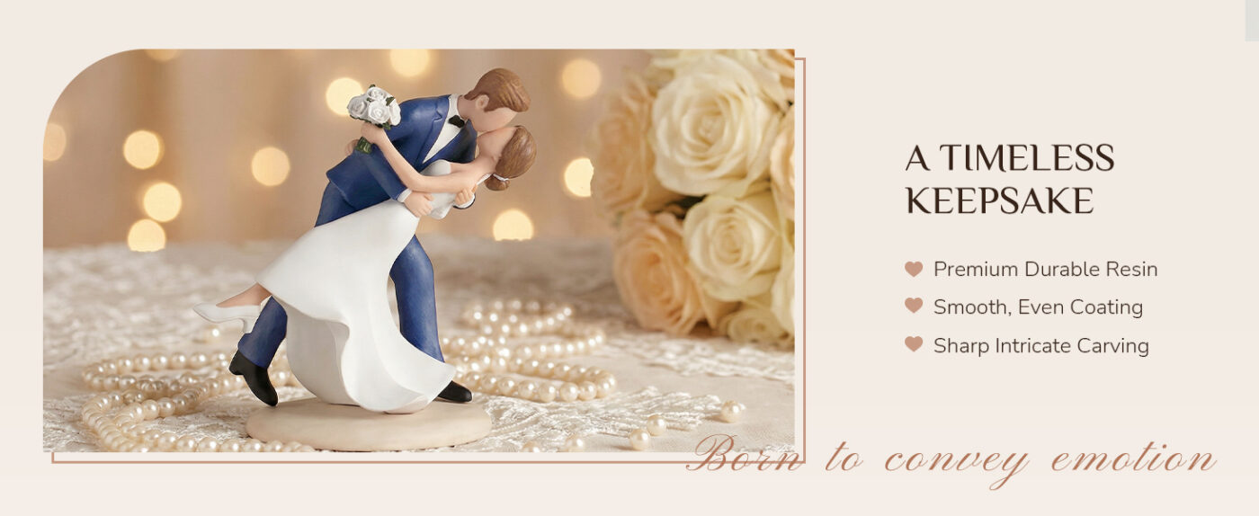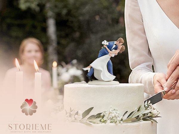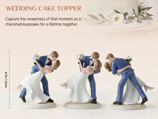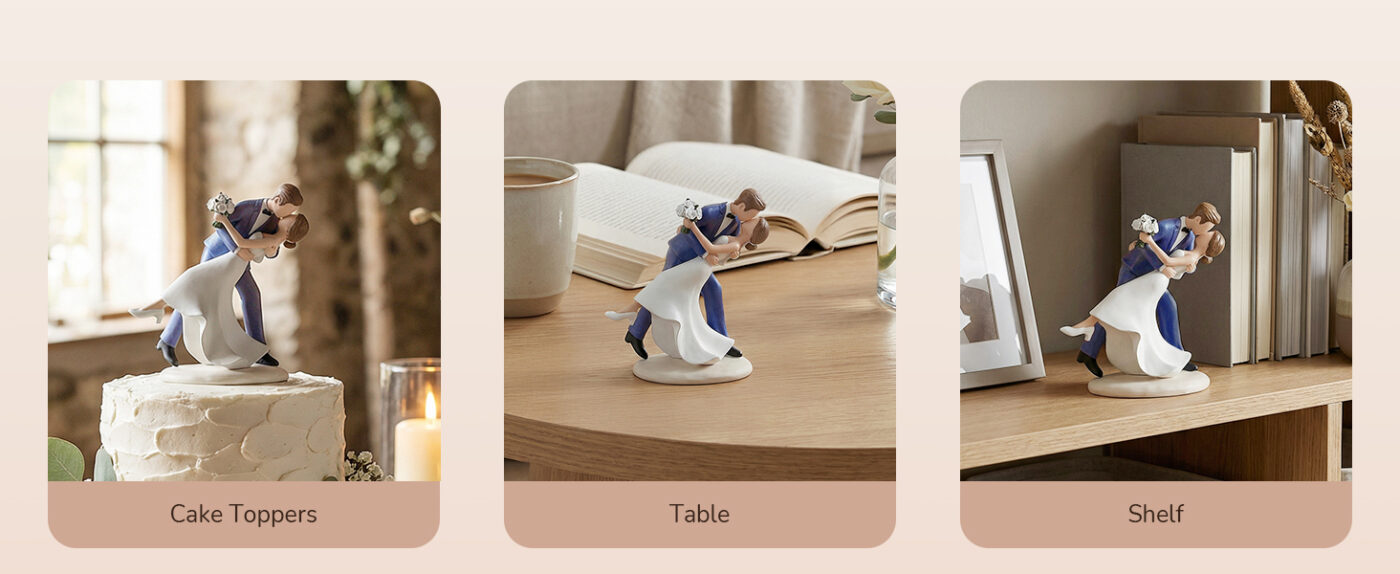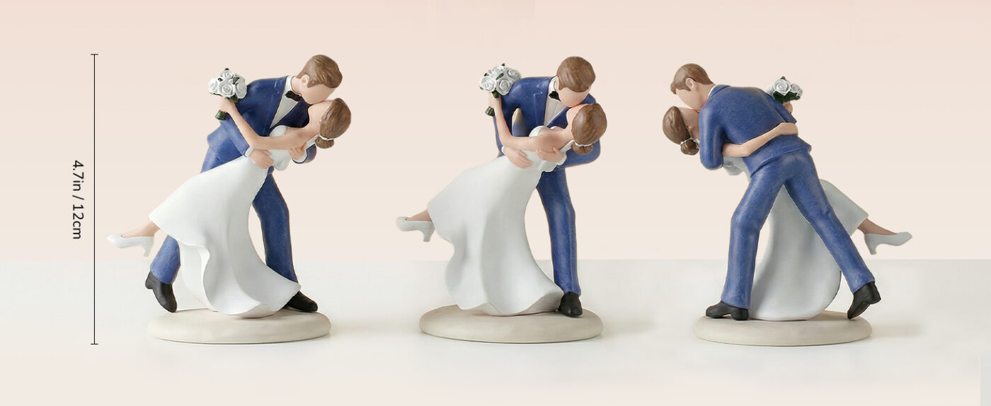 This bride and groom figurine captures that iconic dipping kiss, full of joy, love, and celebration. Designed as a cake topper, it brings your wedding cake to life, turning it into more than decoration — a centerpiece of your story.