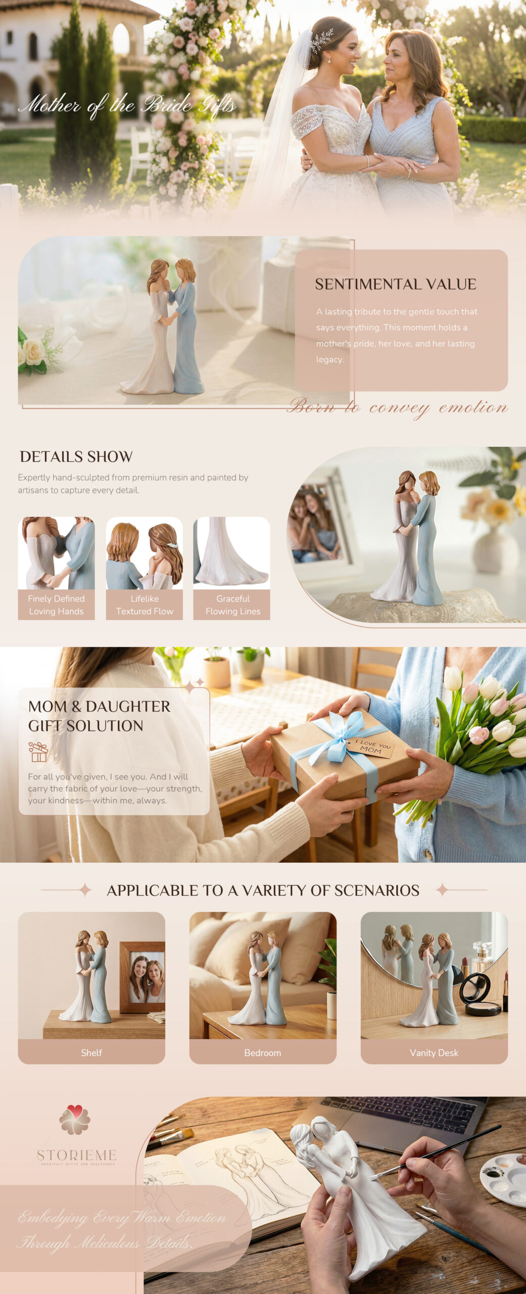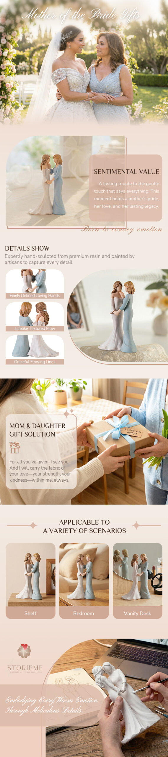 This bride and mother figurine captures that quiet, intimate gesture: a gentle touch on the cheek, filled with love, pride, and unspoken gratitude. It’s a reflection of a bond built over years — from childhood to this once-in-a-lifetime day.