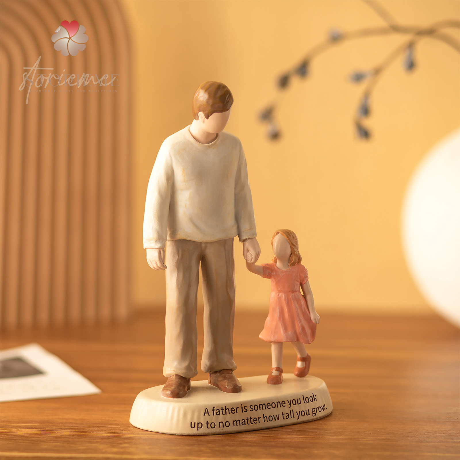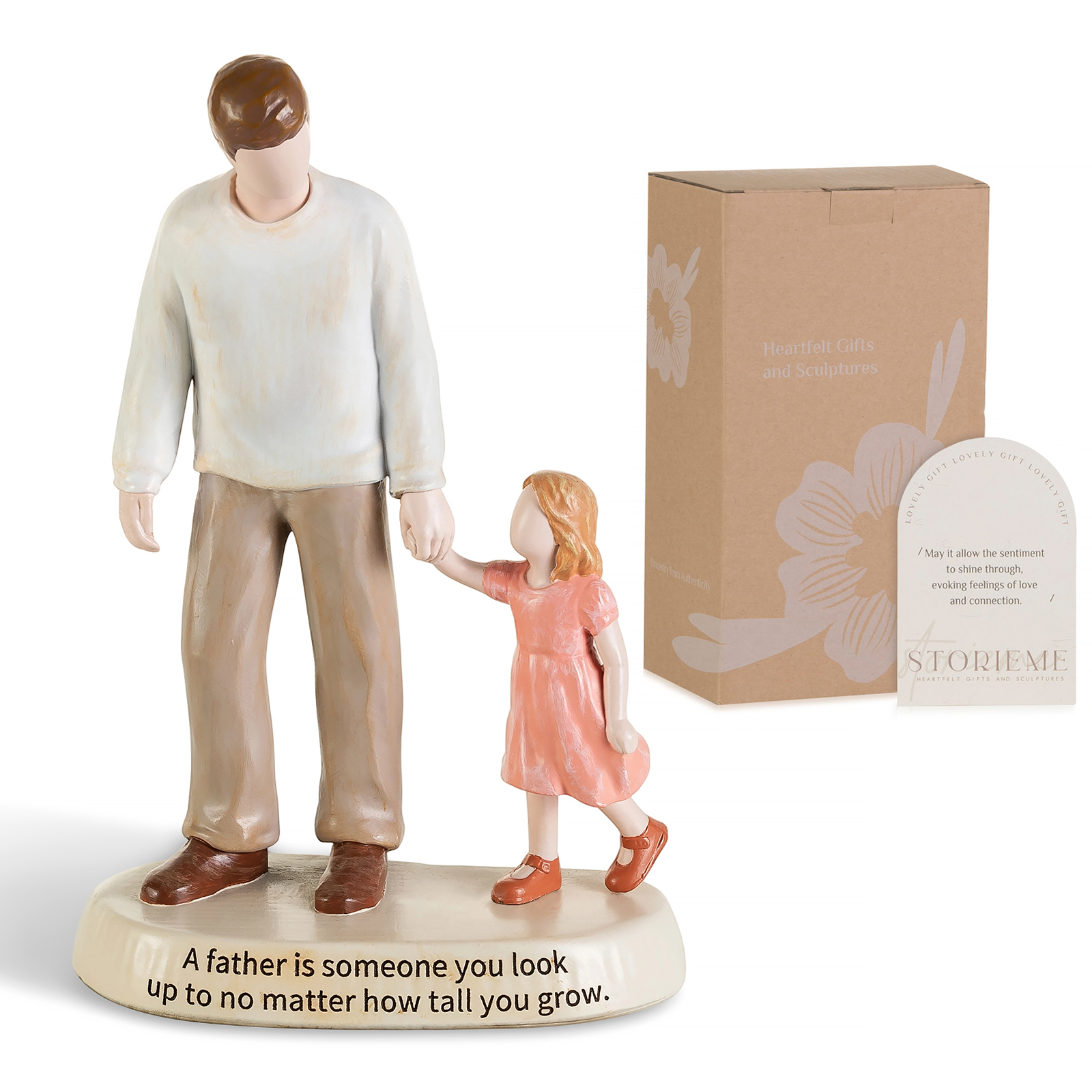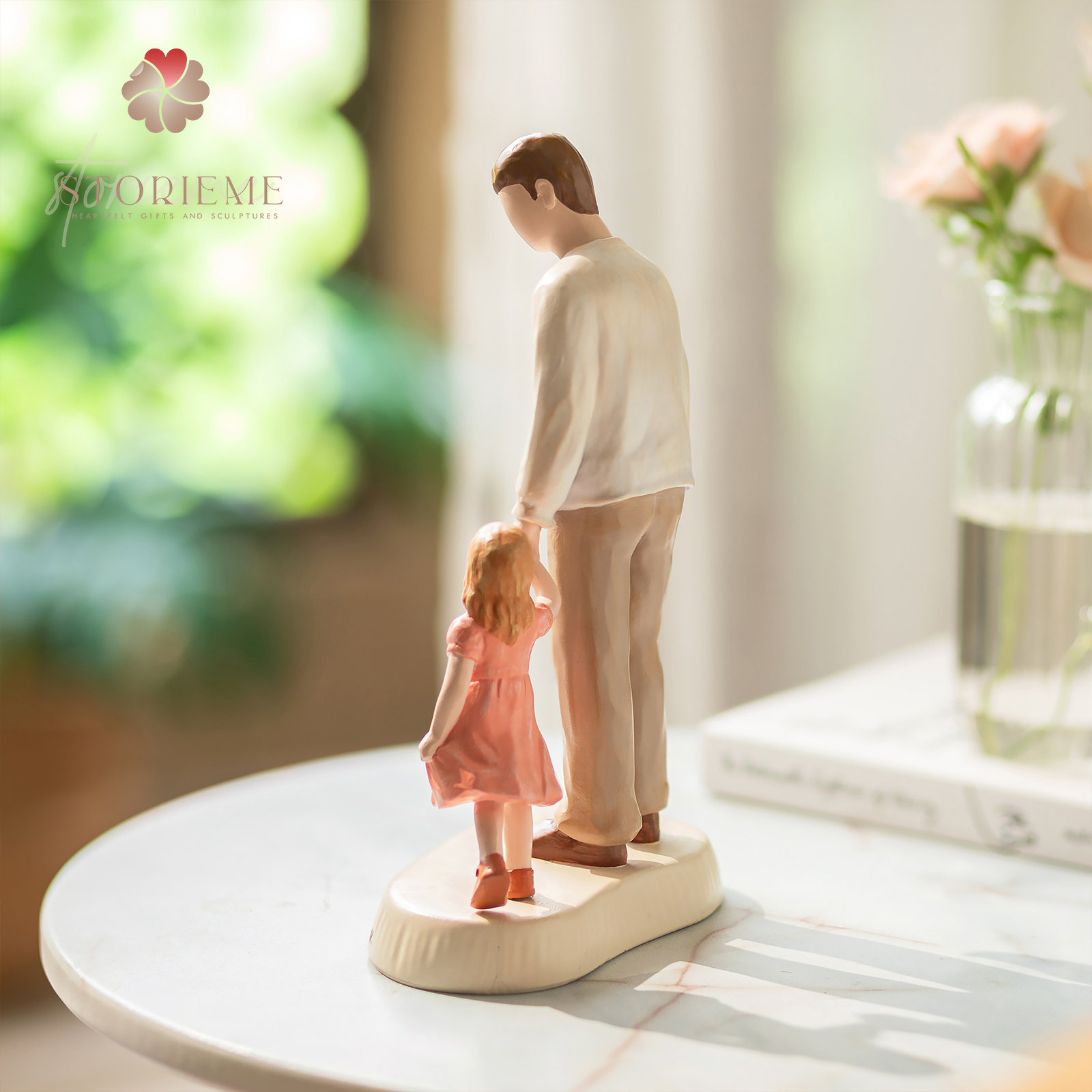 This father and daughter figurine captures a simple yet powerful moment — a little girl walking hand in hand with her dad. It reflects a bond built on guidance, protection, and quiet strength.