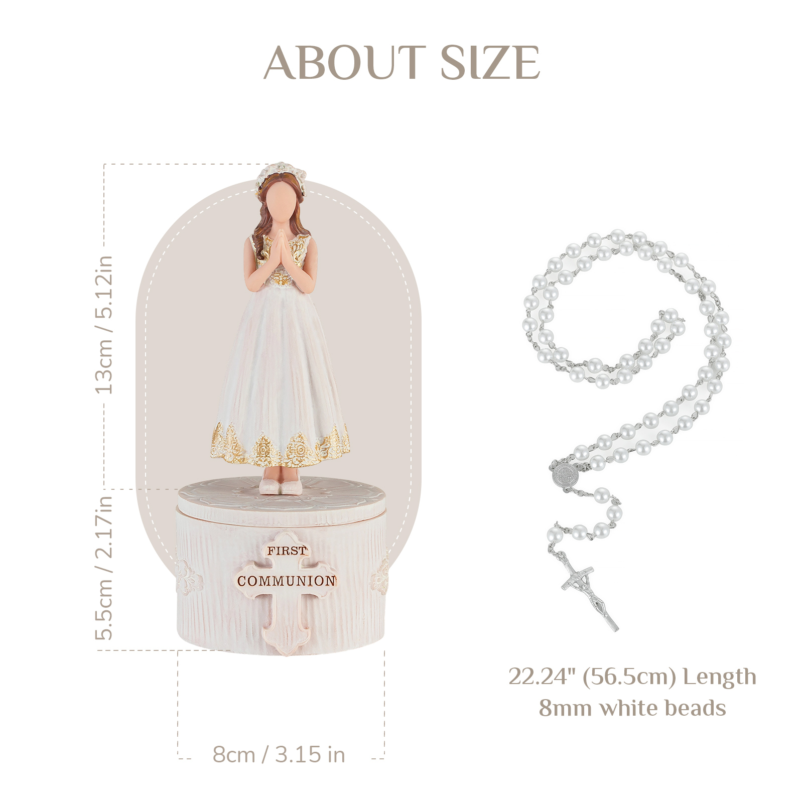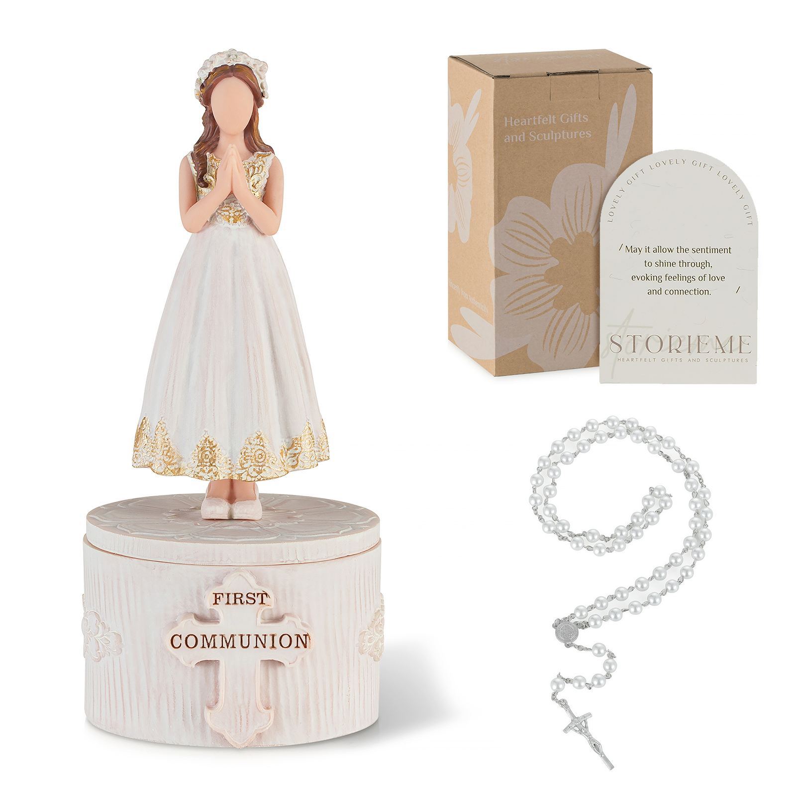 • Includes praying girl figurine, keepsake box, rosary with cross, and message card